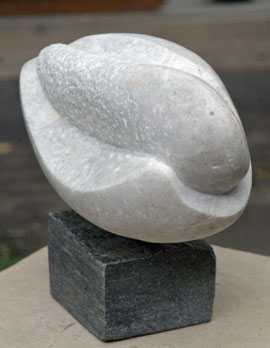 Diese Skulptur ist 2006 in Magial-Tal in der italienischen Schweiz entstanden. Es war eine wunderbare Erfahrung 2 Wochen in der Natur zu sein und diesem Stein aus seiner natürlichen Form in ein neues Gewand zu verhelfen. Es war wie ein Herausschälen. Er heißt „ Grenzgänger“ und ist ein Symbol als Begleiter zur Freiheit des Menschen.